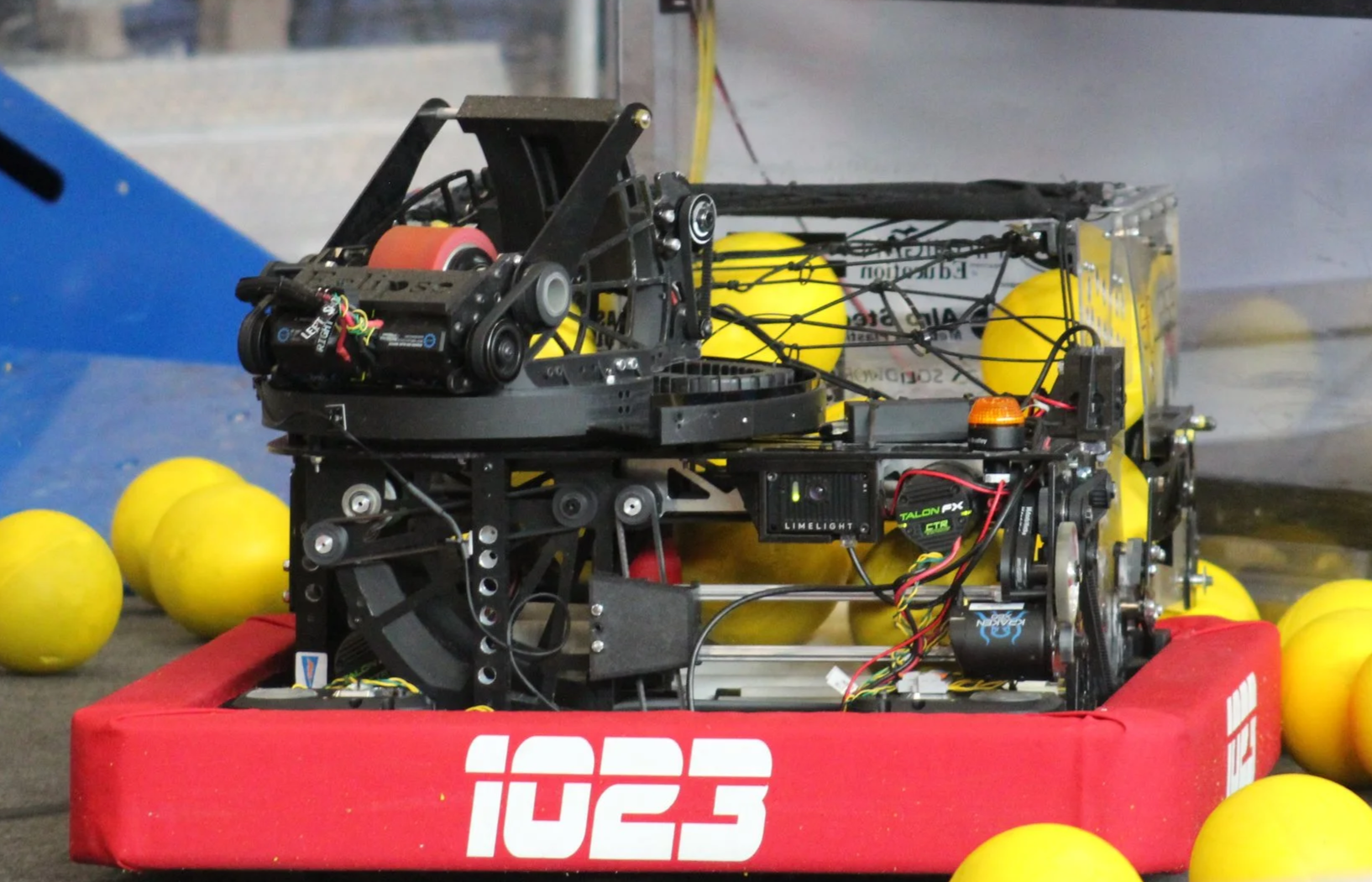 In between the first and second day we discovered that our top lexan plates were causing jamming in our hopper and causing us to shoot slower. We quickly tried to come up with a fix to this issue and started trying new things such as a net, which worked way better.