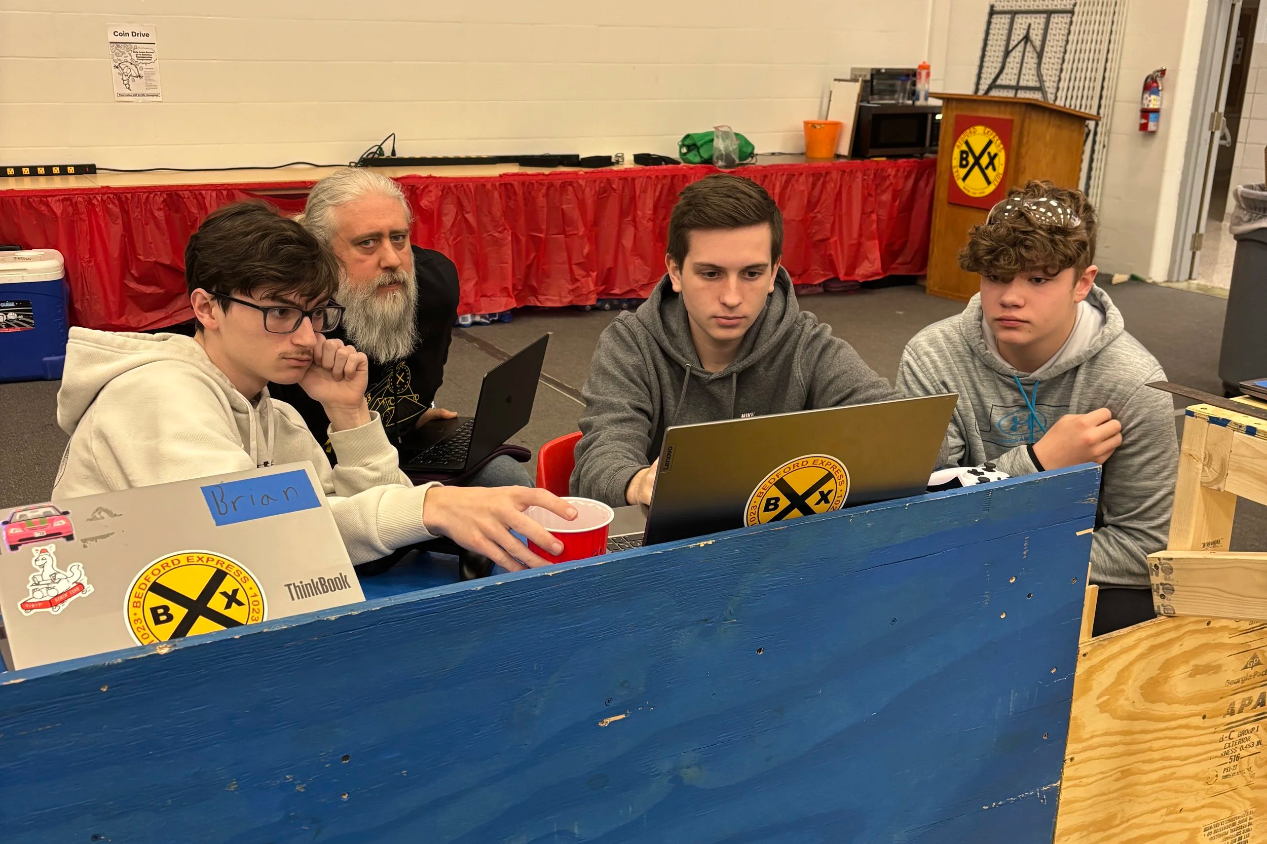 To begin, our coaches and mentors shared about all the hard work we put into this season and gave an update on the status of our robot. Then, we introduced the alumni who came to the unveil. Next, the students of Bedford Robotics, Bedford Express and Next Express, shared their name, grade, and how they contributed to the team.
